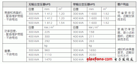 表3:UPS功率密度、體積和重量比較表
