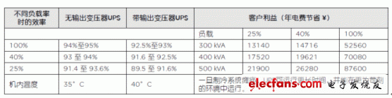 表2:UPS工作效率比較表(按照輸出功率因數(shù)0.9計(jì)算)
