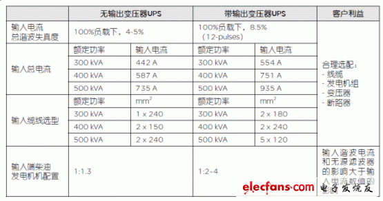 表1:UPS的總電流失真度、總電流有效值和線纜配置要求比較表