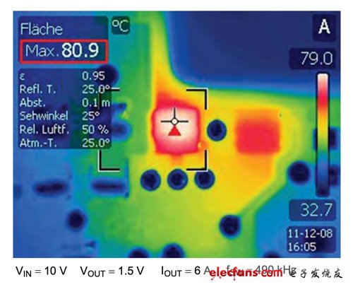 圖10 內(nèi)建DC-DC轉(zhuǎn)換器的PCB熱成像照片