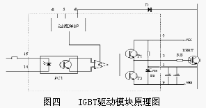 到目前為止,IGBT有多種驅(qū)動(dòng)方法,基本上是由混合集成電路組成。日本富士電機(jī)公司生產(chǎn)的厚膜集成電路如EXB840/841、EXB850/851是專為IGBT設(shè)計(jì)的驅(qū)動(dòng)模塊,符合上述所有驅(qū)動(dòng)條件,是理想的驅(qū)動(dòng)電路模塊。HWKT—09型微機(jī)IGBT開關(guān)式勵(lì)磁裝置采用了這種專用芯片。驅(qū)動(dòng)模塊的原理框圖如圖四所示。