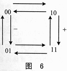由圖4可知,A、B信號的相位相差1/4個周期,所以可得圖6所示的狀態(tài)變換圖。