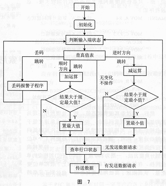 ③在執(zhí)行程序中,可根據(jù)不同需要設(shè)定上下限進(jìn)行數(shù)據(jù)處理。同時,由于處理程序很少,執(zhí)行時間短,串行通信部分可采用查詢方式完成。