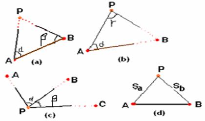 交會法有測角交會和測邊交會兩種,測角交會包括前方交會右圖(a)、側(cè)方交會右圖(b)和后方交會右(c)、測邊交會右圖(d)所示。