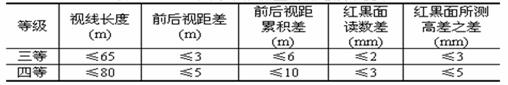 三、四等水準測量的技術(shù)要求見下表: