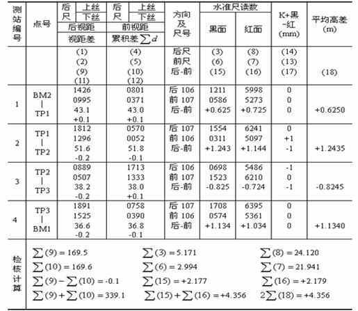 紅、黑面高差之差在容許范圍以內(nèi)時,取其平均值作為該站的觀測高差: