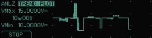 圖3. Fluke884X點(diǎn)陣圖形顯示屏的一個(gè)局部圖。在趨勢(shì)繪圖中的每一欄中繪制最小和最大數(shù)據(jù)點(diǎn)。