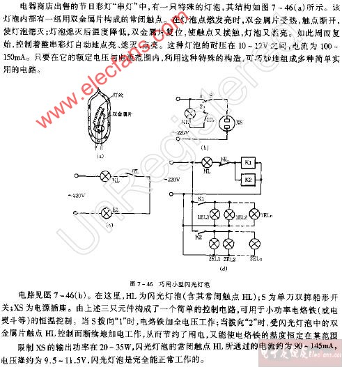 原理見圖7-46(c)。用一只閃光燈泡HL和一只220V。25W的白熾燈泡EL,