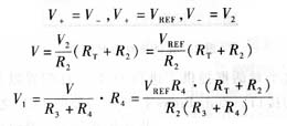 ? 對于具體溫度測控系統(tǒng),R2、R3、R4均為已知,VREF 為TL431的內(nèi)部基準電壓,是一恒值,因此電橋的輸出電壓ΔV與ΔR成線性關系,即電橋輸出實現(xiàn)線性化。電阻R2、R3、R4均選溫度系數(shù)小且同方向變化的線繞精密電阻,這樣電橋輸出信號達到高穩(wěn)定度目的。