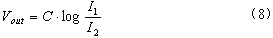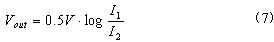 關鍵詞:LOG101 , 對數(shù) , 對數(shù)比率放大器 , 基本連接 如圖所示為LOG101/104的信號和電源的基本連接電路。信號電流I1、I2輸入1腳和8腳,3腳輸出電壓VOUT=(1V)·log