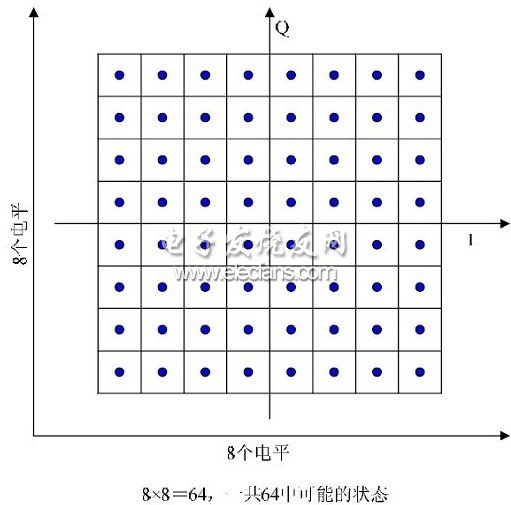、Q調(diào)制和星座圖數(shù)據(jù)經(jīng)過信道編碼之后,被映射到星座圖上。下面討論星座圖的概念。圖1就是QAM調(diào)制器的基本原理框圖,這里包含幾個(gè)主要的概念:
