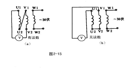 ② 按圖2-15接線。把其中任意兩相繞組串聯(lián)后再與電壓表或萬用表的交