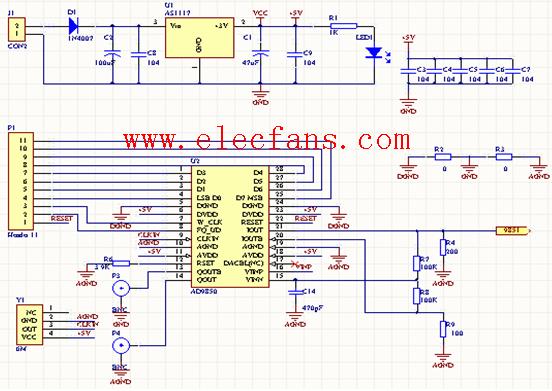 1、本人用AD9851設(shè)計(jì)一個(gè)方波信號(hào)發(fā)生器,設(shè)計(jì)是參考了AD9851的Datasheet中的AD9851/CGPCB evaluation boards中用到的電路(見AD9851