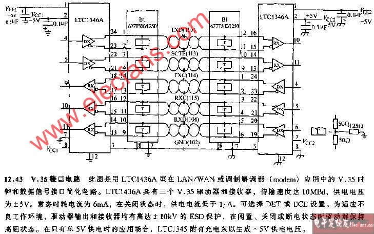 1438 、RS449、EIA530、EIA530-A、V.35、V.36 和 X.21協(xié)議。全部所需的電纜終端由 LTC1546 內(nèi)部提供。
