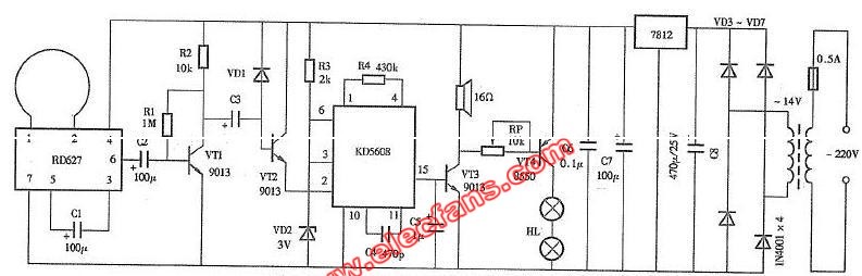 采用RD627的微波語(yǔ)音防盜報(bào)警器