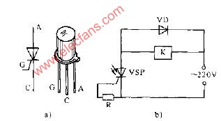 光控晶閘管的工作原理 當在光控晶閘管的陽極加上正向電壓,陰極加上負向電壓時,圖2(a)的光控晶閘管可以等效成圖2(b)的電路。由圖1(b)可推算出下式:Ia = Il / [1-(a1+a2)]式中