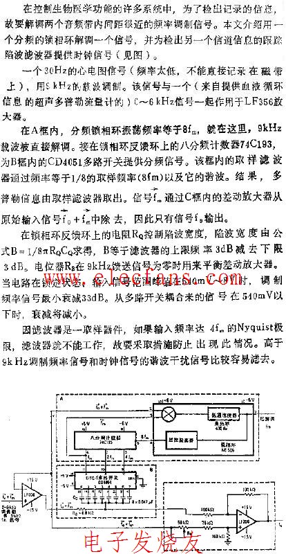 用跟蹤濾波器解調(diào)兩個(gè)音頻帶的頻率調(diào)制信號(hào)