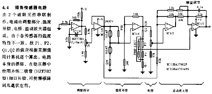模擬輸出傾角傳感器電壓角度關(guān)系電路圖
