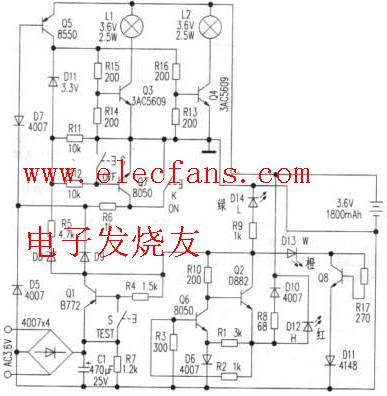 消防應(yīng)急燈電路圖工作原理
