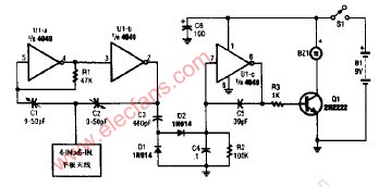 此觸摸報(bào)警器,具有電路簡(jiǎn)單、制作容易,性能穩(wěn)定、可靠等特點(diǎn)。