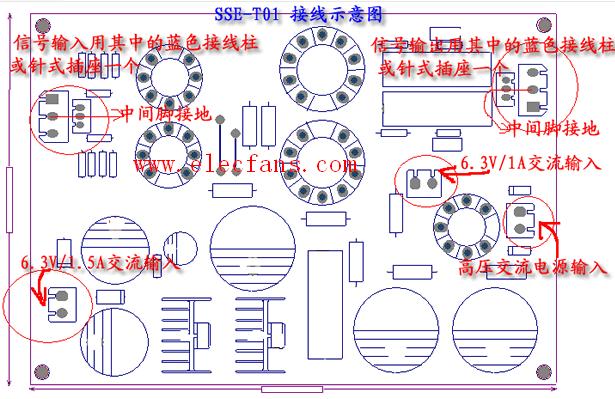 這款SSE-T01膽前級板在設(shè)計和用料上十分嚴(yán)謹(jǐn),采取嚴(yán)格的一點接地措施,并且高電壓部分和信號通道,電源部分和放大部分遠(yuǎn)離并且用單獨地線隔離,兩聲道對稱設(shè)計,音頻通道中唯一的耦合電容采用WIMA MKP4專用音頻發(fā)燒電容,電阻采用高品質(zhì)金屬膜電阻或DALE電阻.眾所周知,膽機(jī)在布線上和普通晶體管電路有著較大區(qū)別,稍有處理不好,即會引入工頻交流噪聲,信噪比差是膽機(jī)制作中令人頭痛的問題。在本板設(shè)計中發(fā)現(xiàn),不同區(qū)域不同時間段時市電的電壓波動較大,如果加上電源牛的電壓不準(zhǔn),對燈絲的電壓影響較大,甚至于不能正常工作,如以上兩種因素的影響,有時交流6.3V的電壓竟會達(dá)到7V左右,實際上燈絲的電壓的波動對音質(zhì)的影響遠(yuǎn)大于屏壓的波動影響,過高或過低的燈絲電壓都會導(dǎo)致管子的迅速老化失效.這一點在其它網(wǎng)上都有具體的討論過.