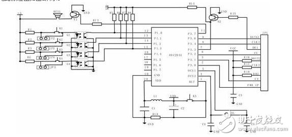 煙霧、煤氣泄漏、紅外等這些傳感器的報(bào)警信號(hào)通過(guò)光電耦合接入單片機(jī)的P2 口,如圖4 所示,在傳感器沒(méi)有報(bào)警信號(hào)時(shí),光電耦合芯片處于截止?fàn)顟B(tài),與之相接的單片機(jī)端口為低電平;當(dāng)傳感器有報(bào)警,傳感器輸出高電平,此時(shí)光電耦合芯片導(dǎo)通,與之相接的單片機(jī)端口為高電平,由單片機(jī)對(duì)報(bào)警信號(hào)進(jìn)行采集并做出相應(yīng)處理。