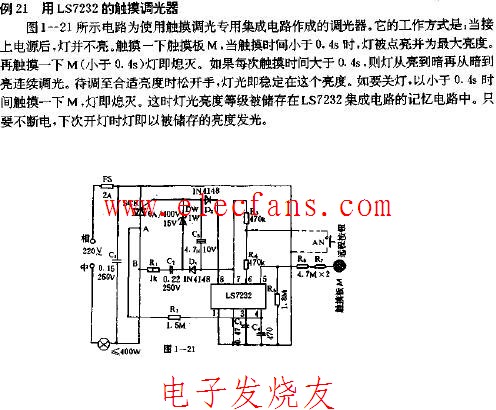 電子發(fā)燒友網(wǎng)>電子技術(shù)應(yīng)用>電子技術(shù)>電路圖>可控硅電路圖>調(diào)光電路圖>用LS7232的觸摸調(diào)光器電路圖
