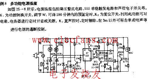 家用電器、照明燈等電源的開或關(guān),常常需要在不同的時(shí)間延遲后進(jìn)行,本電源插座即可滿足這種不同的需