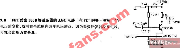 FET給出30dB增益范圍的AGC電路圖