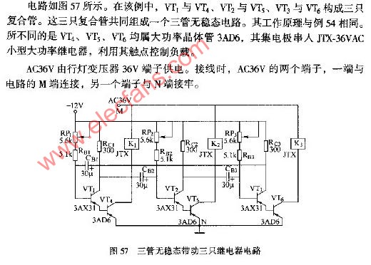 三管無穩(wěn)帶動(dòng)三只繼電路圖