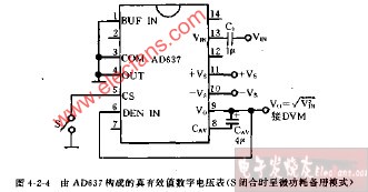 真有效值轉(zhuǎn)換器 選用高精度的AD637芯片(圖 16),其外圍元件少、頻帶寬,精度