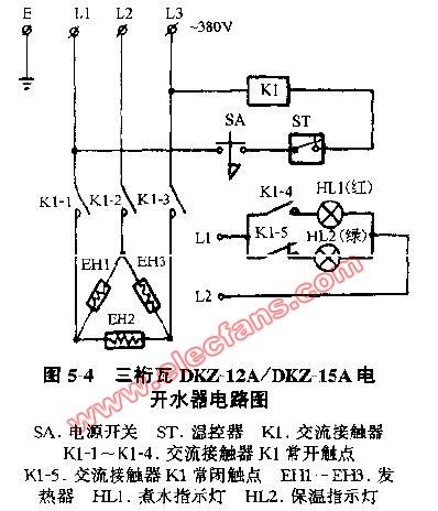三桁瓦DKZ-12A DKZ-15A電開水器電路圖