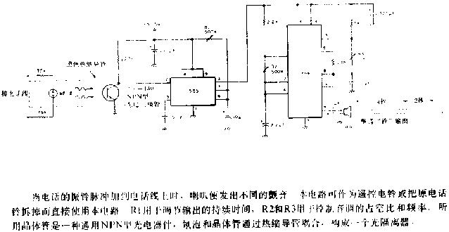 光耦合電話防盜打器及電路圖 若你不在家中,當(dāng)你的朋友打來電話時(shí),該應(yīng)答器會(huì)自動(dòng)地將你的去處或聯(lián)絡(luò)電話告訴給你的朋友。該應(yīng)答器安全可
