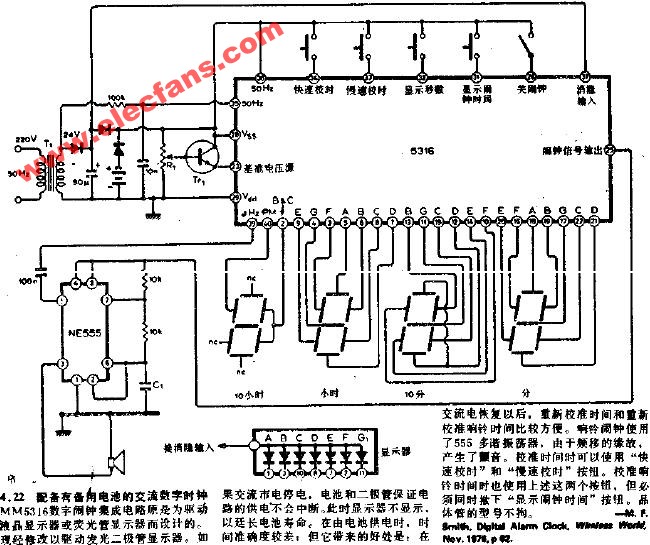 配備有備用電池的交流數(shù)字時鐘電路