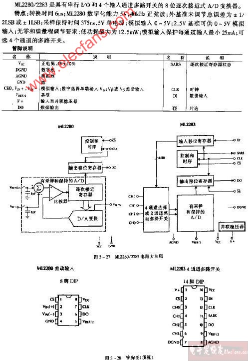 電子發(fā)燒友網>電子技術應用>電子技術>電路圖>壓敏傳感器電路>ML2280 ML2283管腳圖