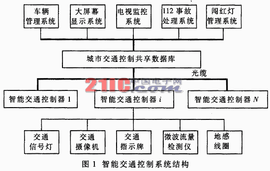 子系統(tǒng)間數(shù)據(jù)傳輸與通信等子系統(tǒng)組成。信息采集子系統(tǒng)通過傳感器采集車輛和路面信息,策略控制子系統(tǒng)根據(jù)設(shè)定的目標(biāo)(如通行量最大、或平均候車時間最短等)運用計算方法(例如模糊控制、遺傳算法等)計算出最佳方案,并輸出控制信號給執(zhí)行子系統(tǒng)(一般是交通信號控制器),以引導(dǎo)和控制車輛的通行,達到預(yù)設(shè)的目標(biāo)。