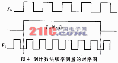 倒計數(shù)法測頻是用被測信號的N個周期形成一個計數(shù)門時間T=N·Tx,在T時間內(nèi)由時標F0計數(shù),這樣一來測頻就相當于測量門寬T,T的最大量化誤差是T0,Tx的最大量化誤差是T0/N。