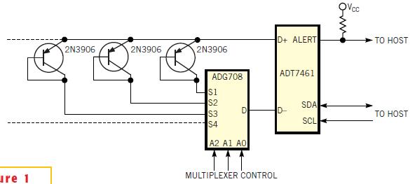 Abstract: A circuit is shown that senses the temperature of a remote thermal diode on the die of a