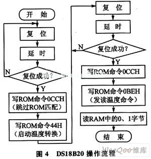 DS18B20溫度傳感器與微處理器間采用串行數(shù)據(jù)傳送,因此,在對(duì)DS18B20進(jìn)行讀寫(xiě)編程時(shí),必須嚴(yán)格地保證讀寫(xiě)時(shí)序,否則將無(wú)法讀取測(cè)溫結(jié)果。在使用PL/M、C等高級(jí)語(yǔ)言進(jìn)行系統(tǒng)程序設(shè)計(jì)