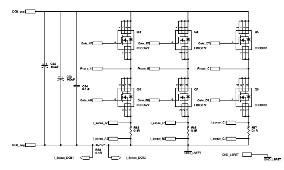 傳輸電路以及直流無(wú)刷馬達(dá)(BLDC)驅(qū)動(dòng)電路等構(gòu)成?! ?b class="flag-6" style="color: red">BLDC驅(qū)動(dòng)電路通常有采用每路6顆NMOS或采用3顆NMOS+3顆PMOS組成的三相橋方案,其中后者方案既可以用于MCU方案,也可適用于專用BLDC