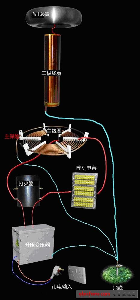 特斯拉線圈裝配示意圖和電路圖