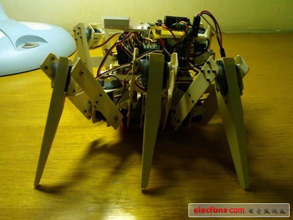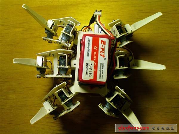● 很酷吧,不過肚子還是趴在桌面上的(肚子下面是電池盒以及6只大腿橫向關(guān)節(jié))。