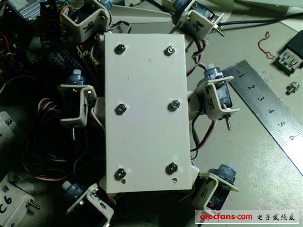 ● 主軀干也是用PVC線槽做的,連接上6只大腿橫向關(guān)節(jié)。
