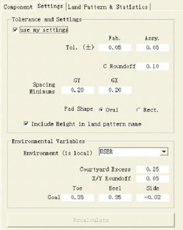 IPC-7351 LP計(jì)算器允許改變生產(chǎn)誤差來決定焊盤尺寸、布局外框誤差、焊盤寬度分辨率、器件誤差、焊盤圖形名稱以及焊接分析。也可以直接使用IPC缺省設(shè)置來保存庫文檔。