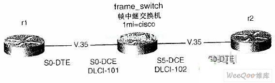 做出—份PVC圖表是很有幫助的。在圖表里,需要包括DCE、PVC以及接口示意圖。給出了該例子的圖表,從硬件與服務(wù)供應(yīng)商的角度對網(wǎng)絡(luò)進(jìn)行了強(qiáng)調(diào)。中間的幀中繼交換機(jī)有兩條V.35DCE線纜用于連接另外兩臺路由器R1和R2。這兩臺路由器在其串口O都連接V35DTE公頭電纜。設(shè)置PVC將串口0上的DLCI 101映射到串口5上的DLCI 102。