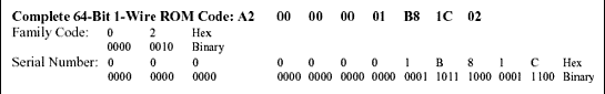 | 10100010 = A2 Hex = CRC Value for [00000001B81C (Serial Number) + 02 (Family Code)] | |
