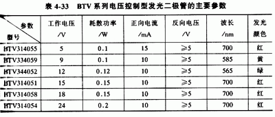 表4-33為BTV系列電壓控制型發(fā)光二極管的主要參數(shù)。?