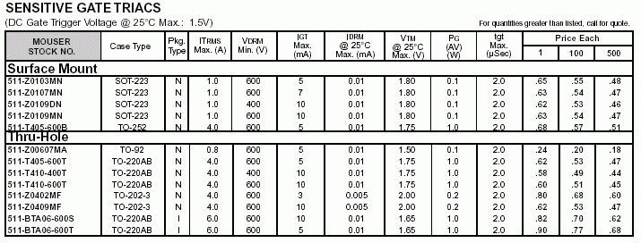 雙向可控硅參數(shù)(國外型號)
