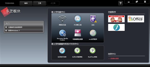 東芝板塊預(yù)置了一些常用的軟件,譬如PC診斷工具、eco實(shí)用程序,用戶也可以自己添加應(yīng)用程序,操作起來非常方便。