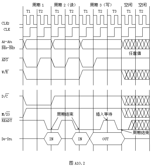 六.(10分)分析說明圖A10.2所示某CPU總線周期時序圖。